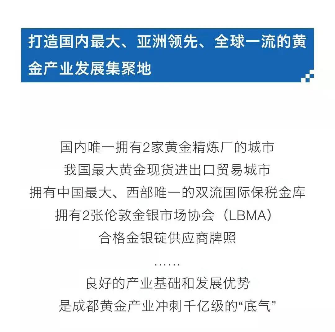 《成都市支持黄金产业高质量发展的若干政策措施(送审稿)》,提出了16项具体举措,瞄准国内最大、亚洲领先、全球一流的黄金产业发展集聚地。成都将从规划建设黄金产业发展载体、推动黄金产业数字化发展、巩固黄金国际加工贸易龙头地位、打造全国黄金实物回购中心城市、做强“成都金”品牌、发挥好成都空港保税物流中心功能、推出更好满足消费需求的产品、增进黄金产业高端交流与合作等多个方面明确给予政策支持。